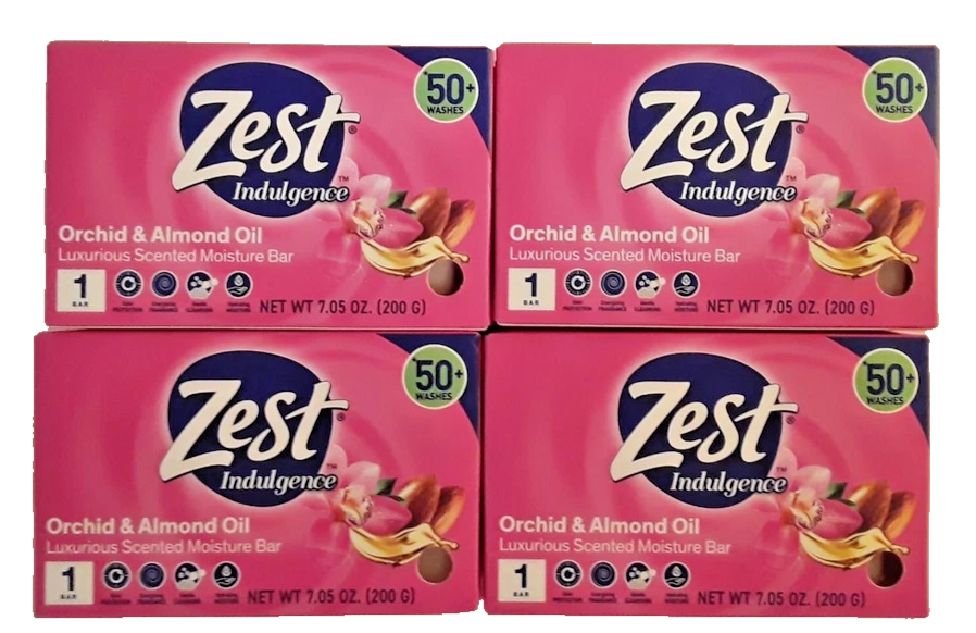 4x ZEST Bar Soap Indulgence Lush Orchid & Almond Oil Large Bars 7.05oz 50+Washes