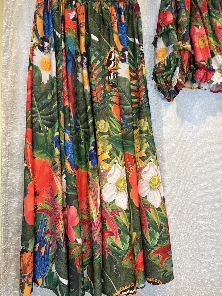 Rachael Zoe Tropical Boho 2 Piece Set Off Shoulder Crop Top & Maxi Size Small
