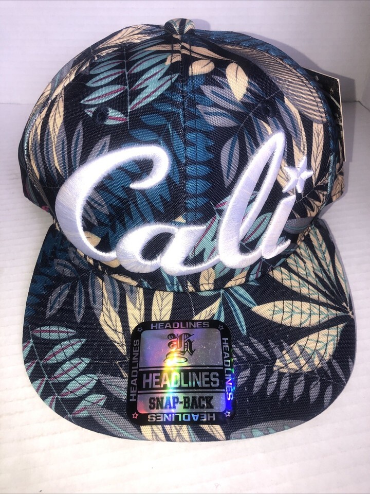 Headlines Black Floral Cali California Snap Back Cap Flat Bill One Size New