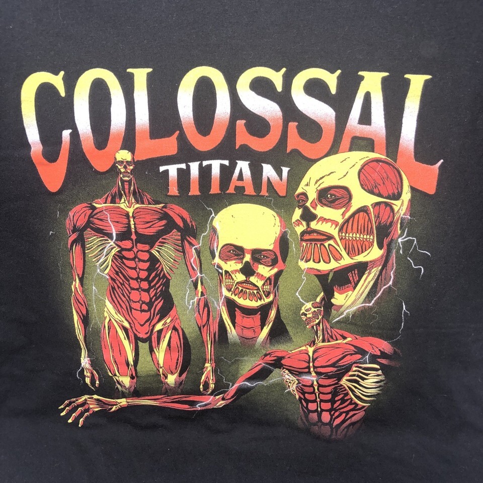Attack on Titan Black T-Shirt Large Ripple Junction Colossal Titan