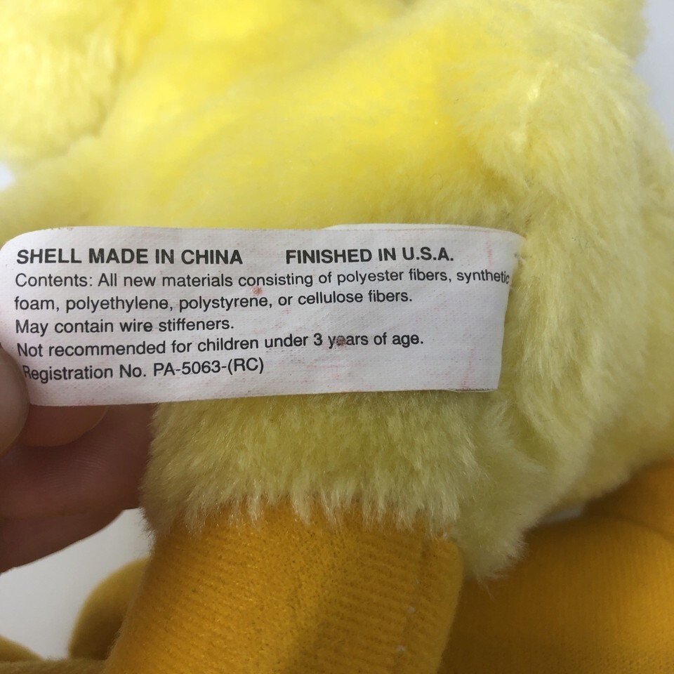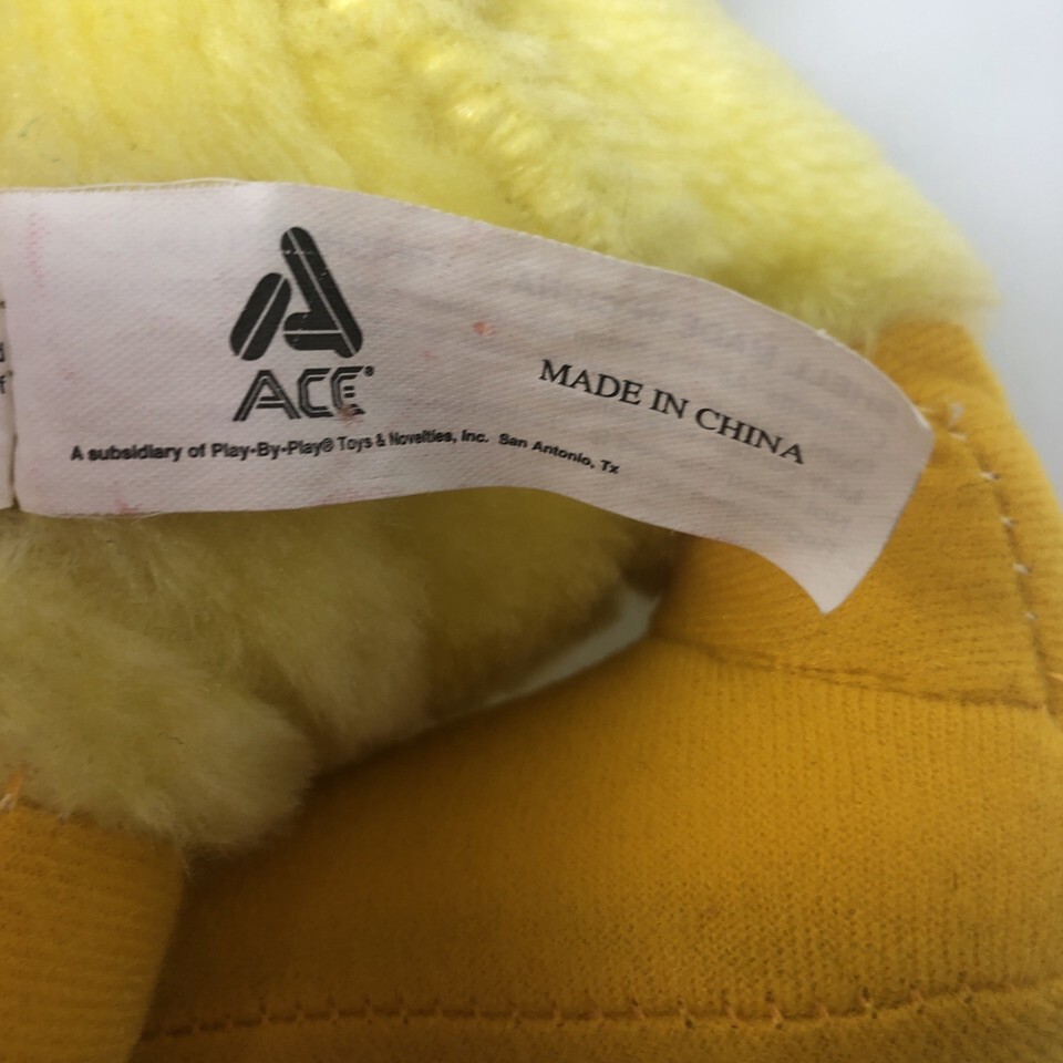 The product is a vintage 1997 Tweety Bird plush toy, standing at 14 inches tall, associated with the Looney Tunes franchise and Warner Bros. Animation. This yellow plush features the character Tweety Bird from the popular TV show Looney Tunes, making it a collectible item for fans of cartoon and TV characters. Made in China, this interactive plush weighs 10 ounces and is a unique addition to any animation merchandise collection.
