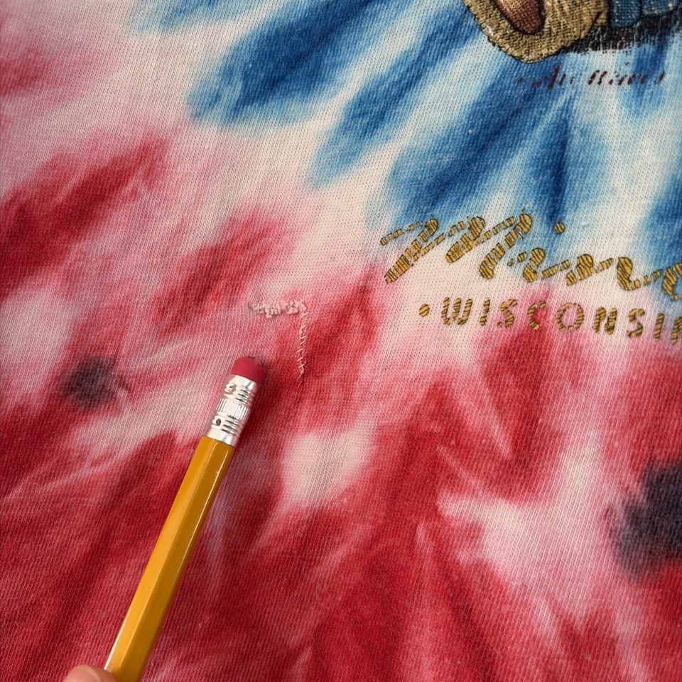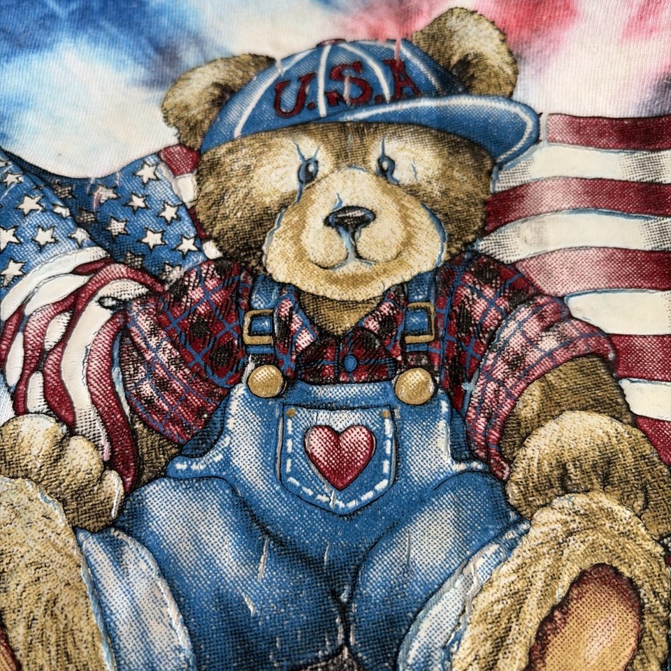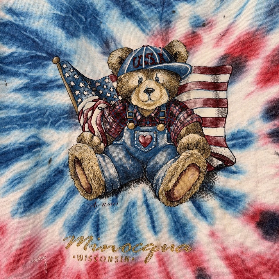 Vintage 2000sY2K Wisconsin USA Flag Teddy Bear Tie Dye T shirt Size 6/8