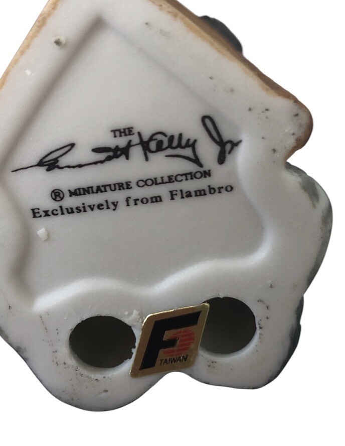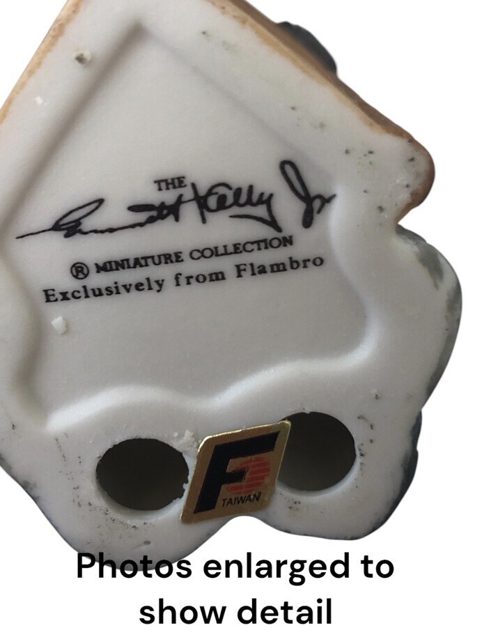 The Flambro Emmett Kelly Jr. Porcelain Clown Figurine standing at 5 inches tall, exudes a fun and curious charm with its multicolor design and signed by the artist himself. This limited edition figurine from 1984 captures the whimsical theme of the circus with its 1970s style, making it a unique and collectible piece for any decor. The porcelain material and detailed craftsmanship make this figurine a special addition to any collection, showcasing the work of the renowned artist Emmett Kelly, Jr.