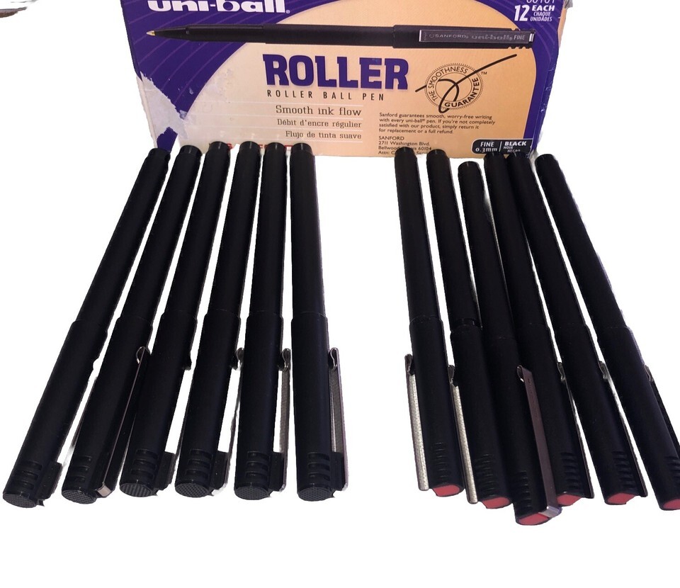 | Uni-Ball Roller Ball Stick Pen, Black/red Ink, 12 Pens, MICRO 0.2mm | RARE