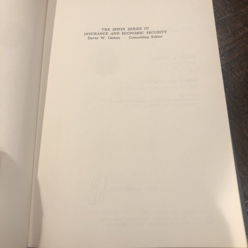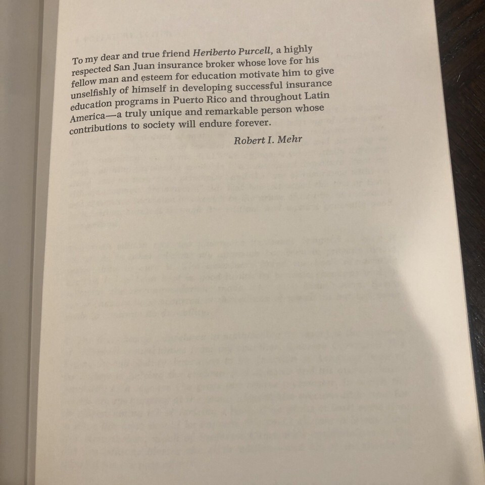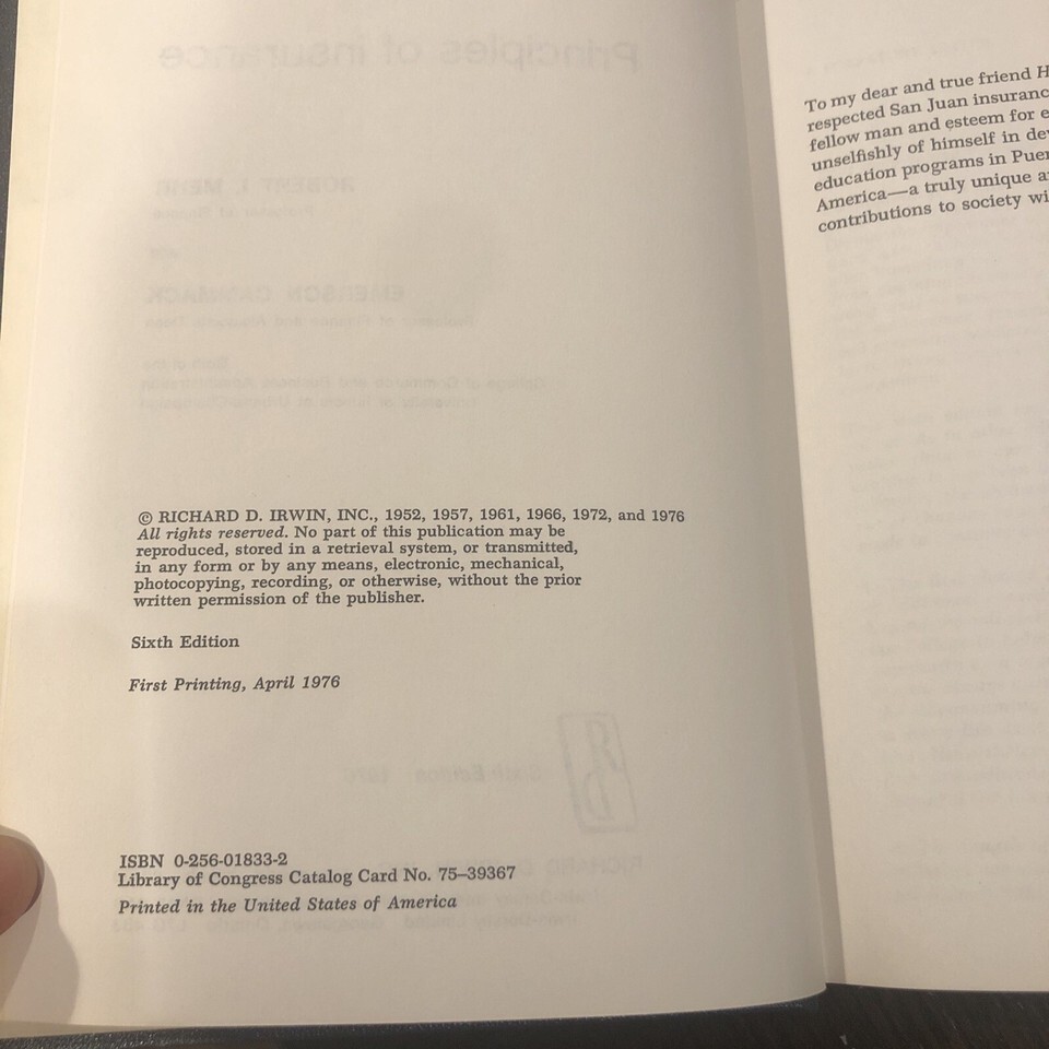 1976 Principles of Insurance By Mehr &Cammack, 6thEditionHardcover