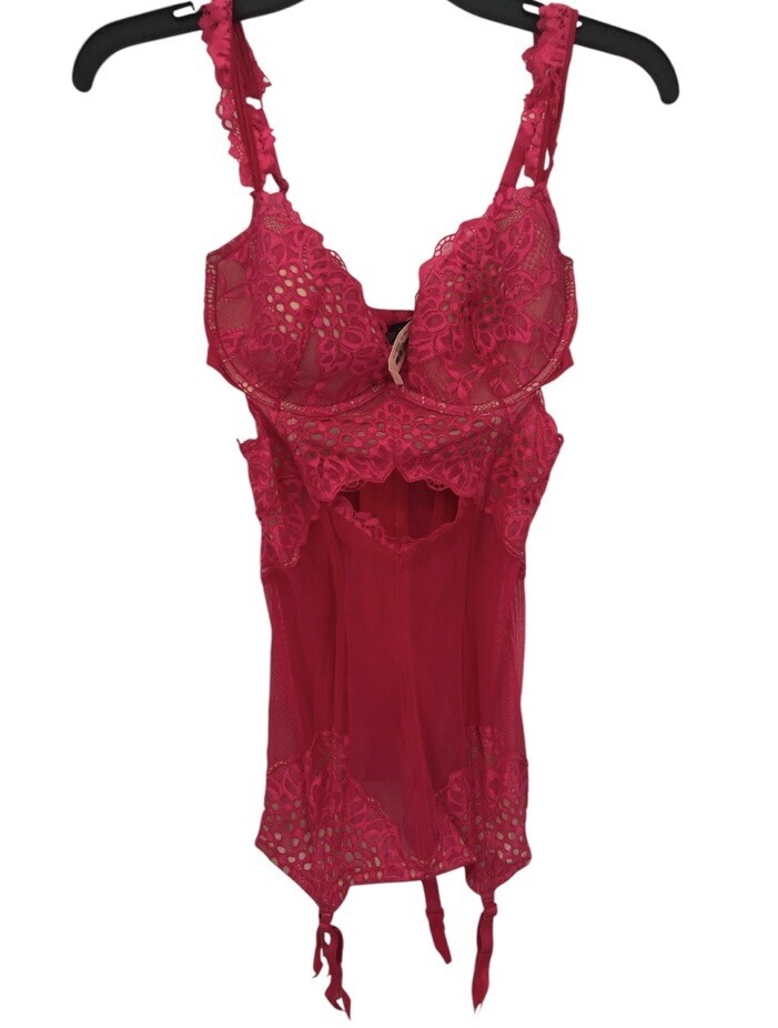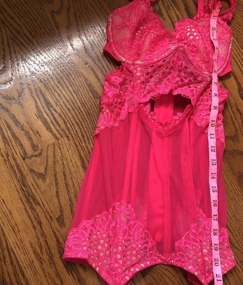 Women’s Victoria’s Secret One Piece Lingerie Pink Lace New With Tags Size 34 D