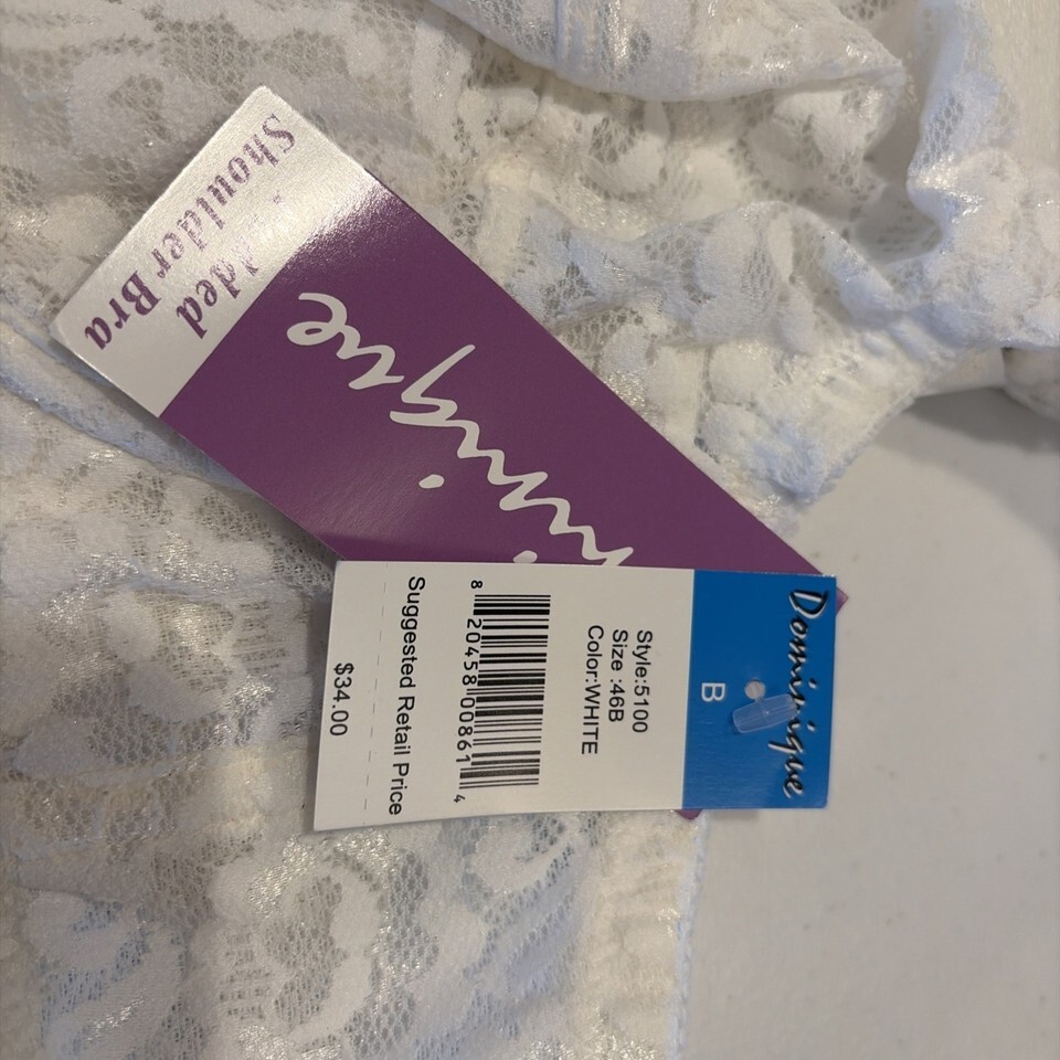 Dominique Women’s Padded Shoulder Bra White Size 46 B NWT