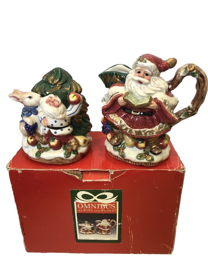 The Fitz Floyd Ombnibus Forest Festival Creamer and Sugar Set features a charming forest pattern, making it a delightful addition to any kitchen or dining table. This collectible set brings a touch of whimsy and elegance to your dining experience. Made by the reputable brand Fitz Floyd, known for their quality and stylish dinnerware, this creamer and sugar set is sure to enhance your serving experience.