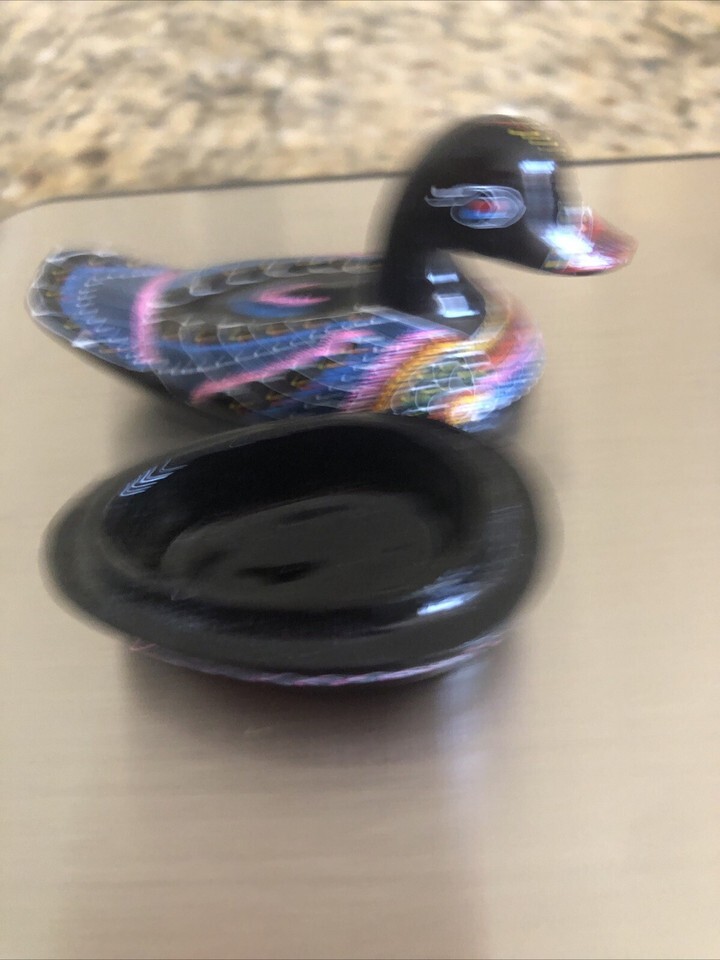 Vintage Black Wooden Duck Trinket Box Handmade Hand Painted. Made In Thailand