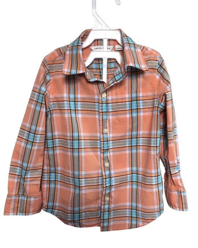 Janie And Jack Toddler Boy Button Up Shirt Orange Plaid Size 3 Cotton 100%
