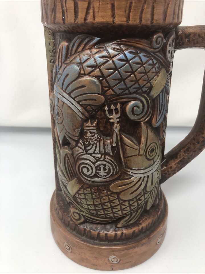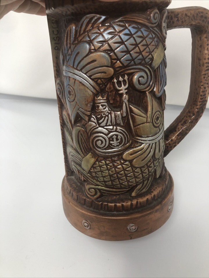 Vintage Ceramic Pisces Beer Stein 9” Long