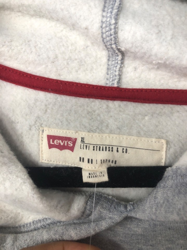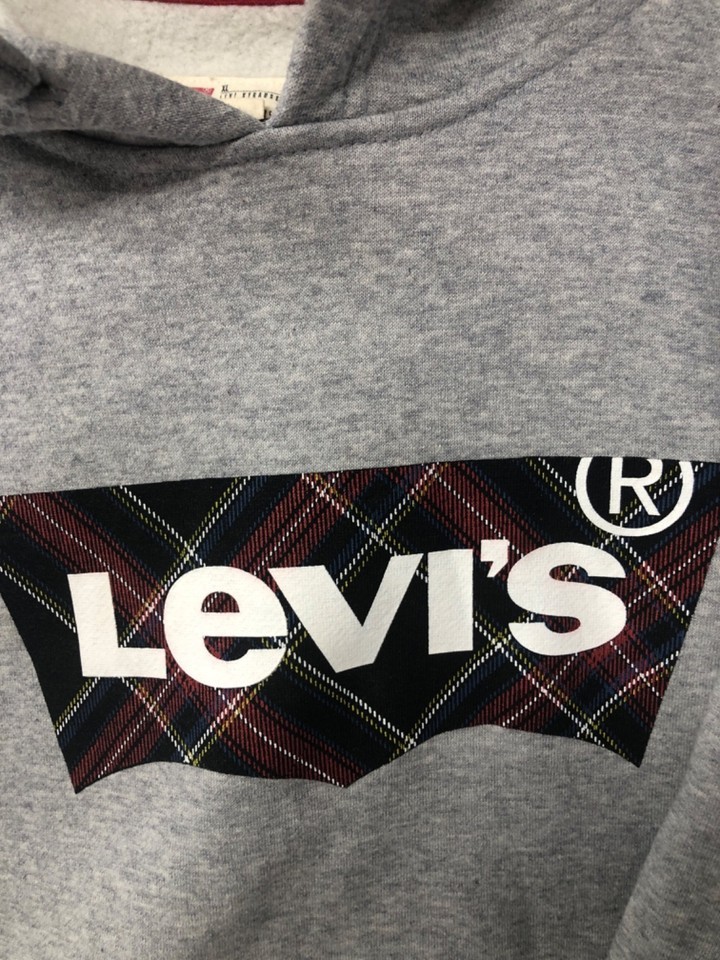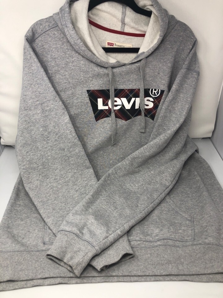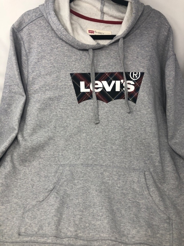 Levi's Gray Nitch Fleece Plaid Logo Hoodie, Men's Size XL Fleece Lined ,Pockets