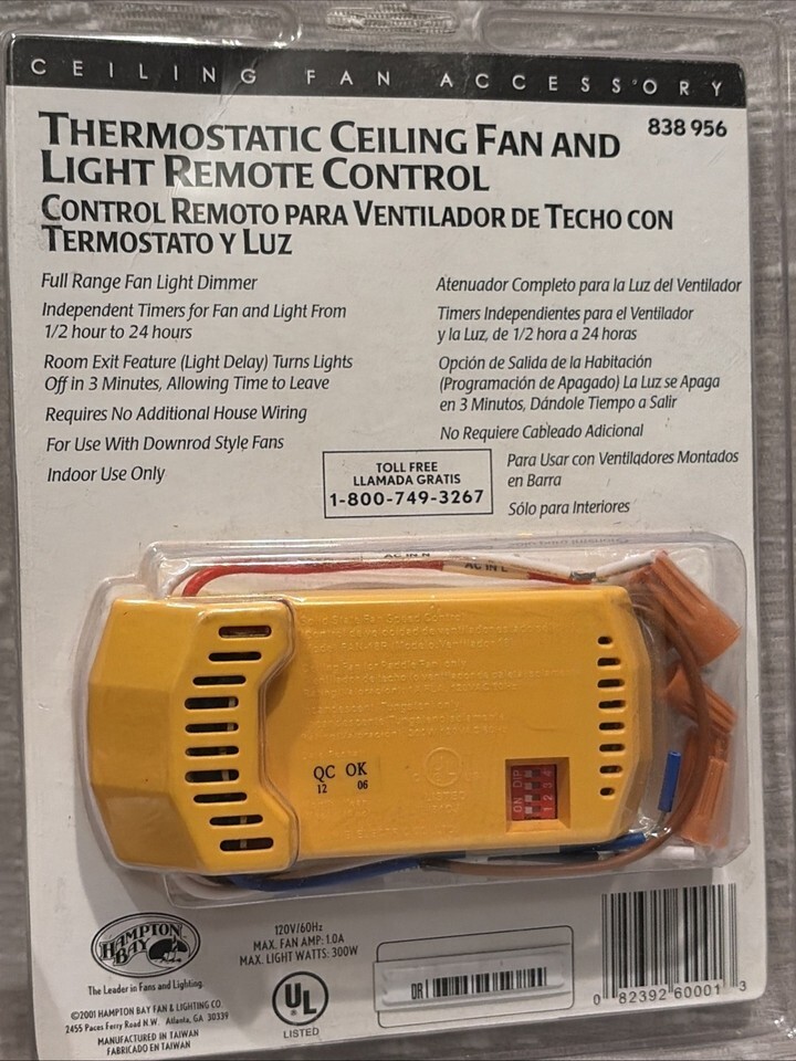 HAMPTON BAY 838-956 Thermostatic Ceiling Fan and Light Remote Control New in Box