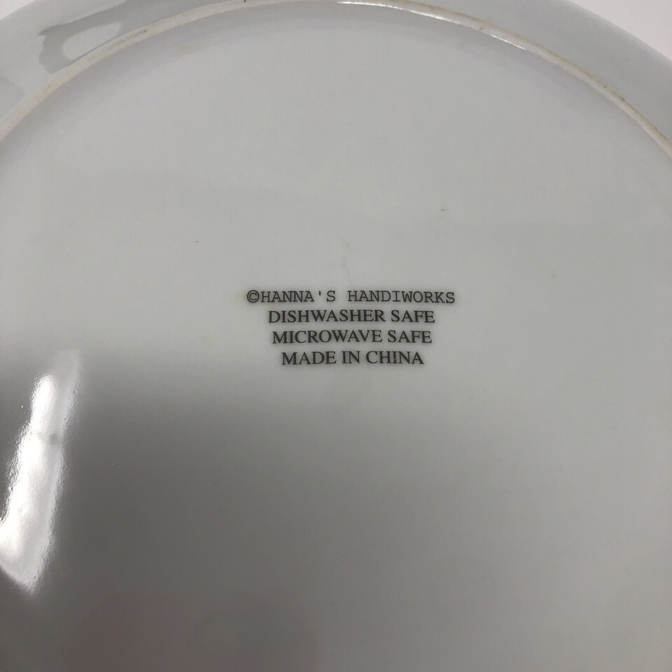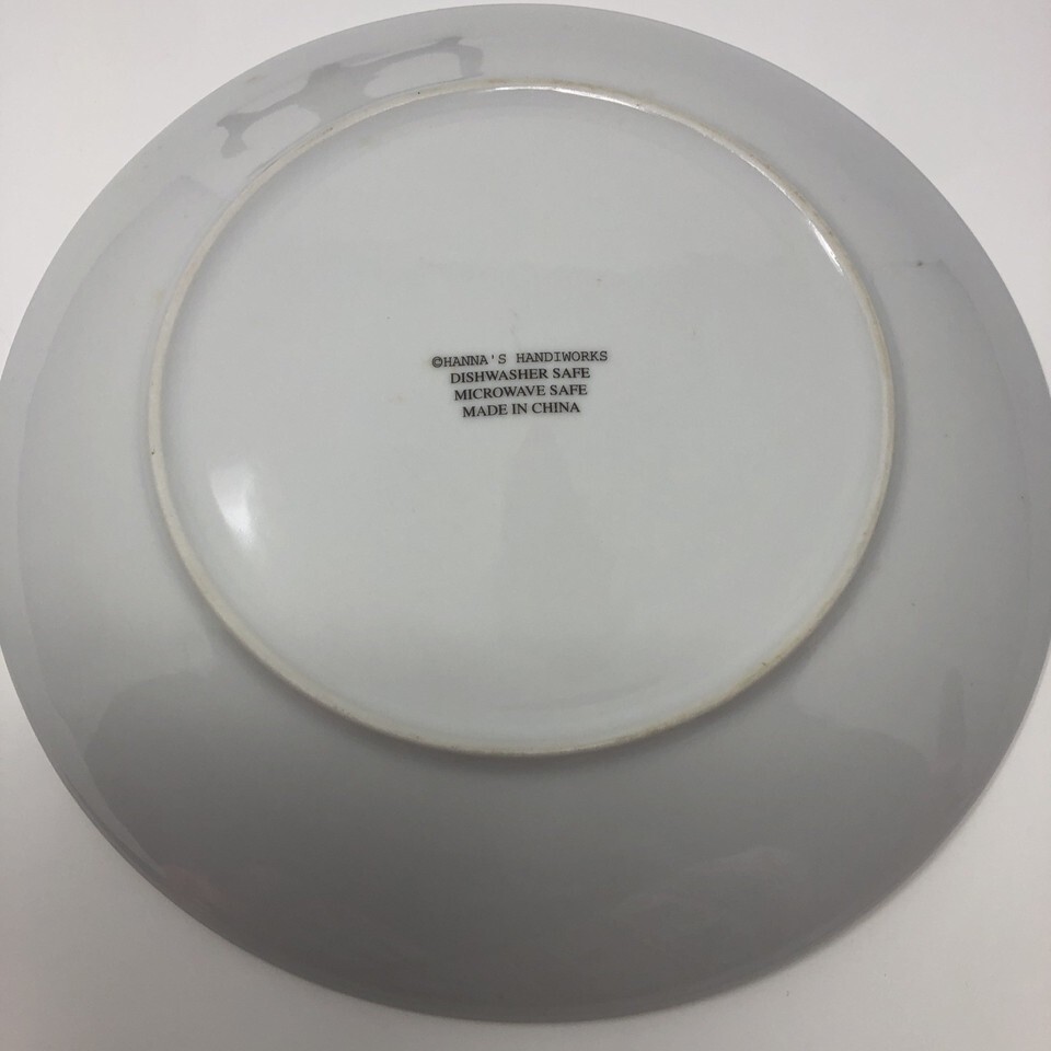Hanna's Handiwork Decorative Vintage Porcelain Plate is a charming collector's item featuring a theme of cats and butterflies. This 11-inch plate showcases intricate details and a decorative style that adds a touch of whimsy to any space. Perfect for collectors of vintage decor or those who appreciate unique pieces with a playful twist.
