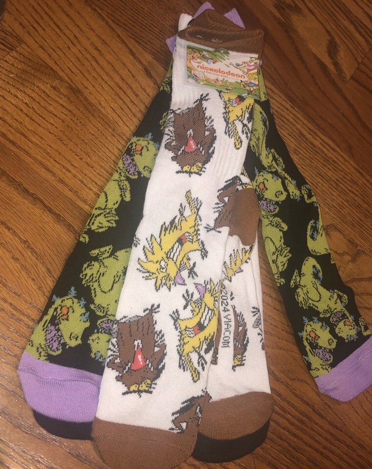 Nickelodeon Pack Of 3 Socks New With Tags Arnold, Rugrats Reptar& Angry Beaver.