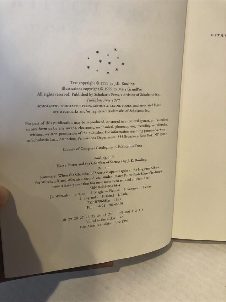 Harry Potter and the Chamber of Secrets First American Edition 1999