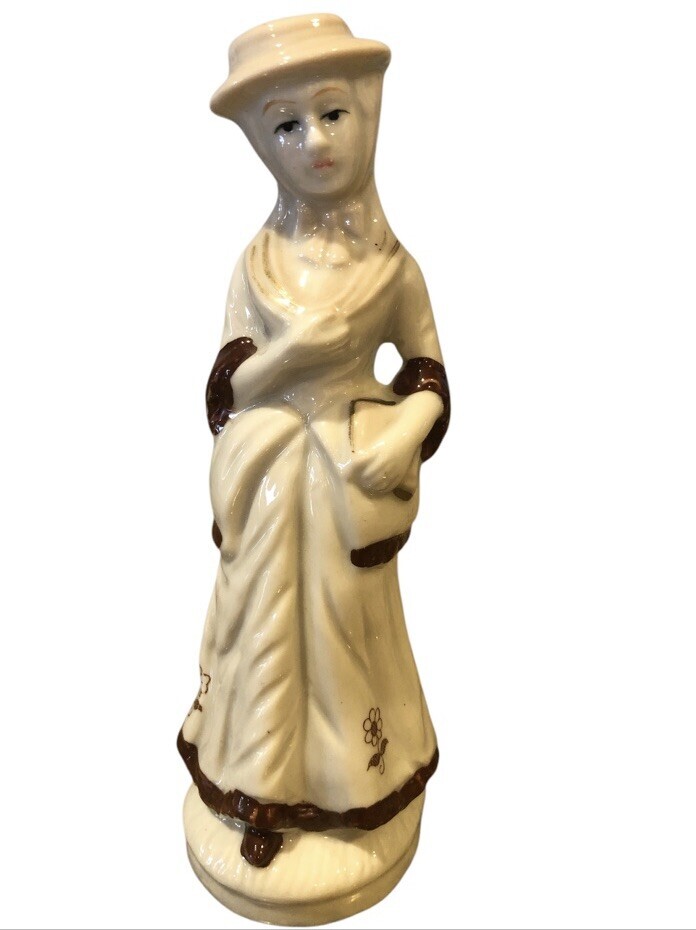 vintage porcelain Lady Figurine With Hat 7 Inches In Length Made In Taiwan