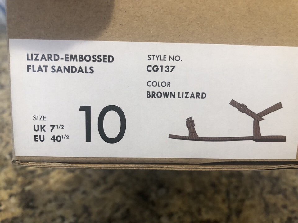 Women’s J Crew Lizard Flat Sandals Brown Lizard Color Size 10 Style CG137