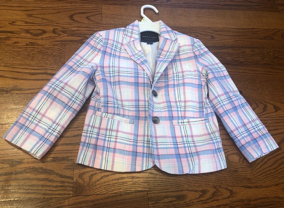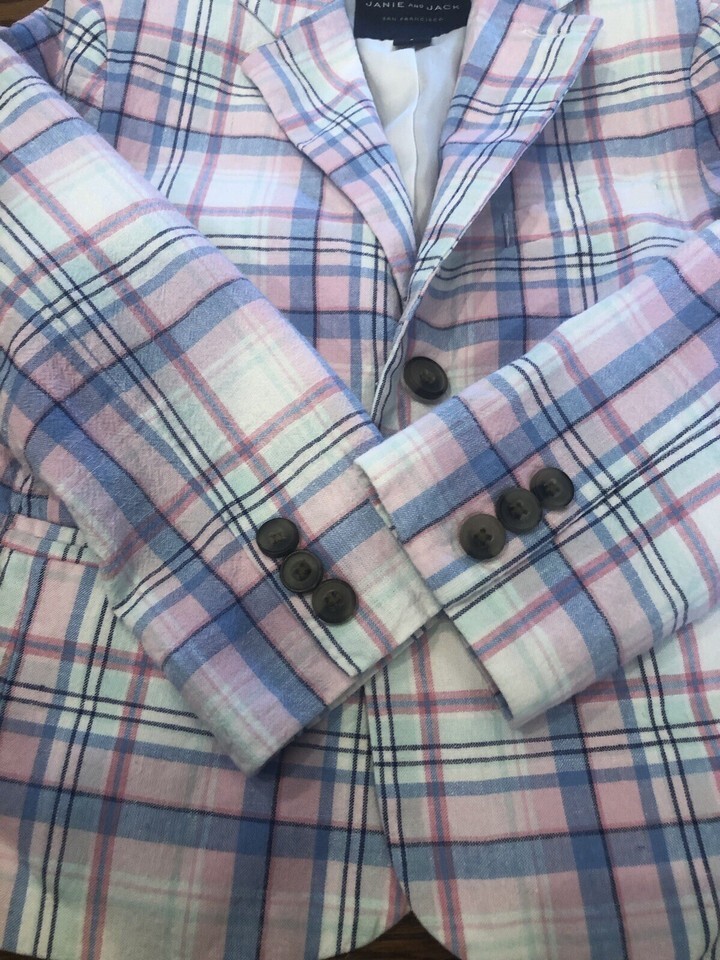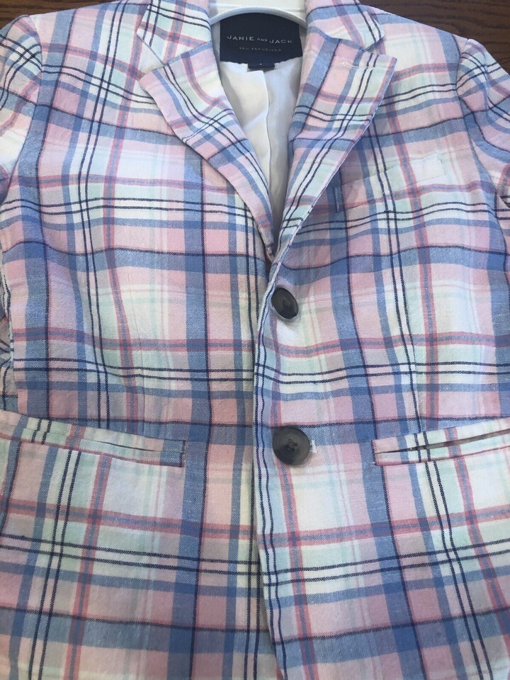 Janie and Jack Madras Plaid Linen Blazer Size 4 White Plaid Preppy