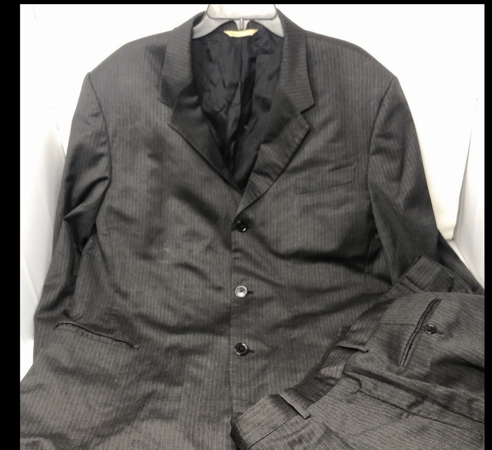 Donna Karan Vintage Italian wool men’s suit 46/40 Style 775703 Pinstripes READ