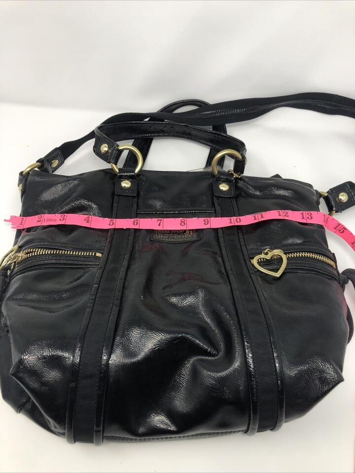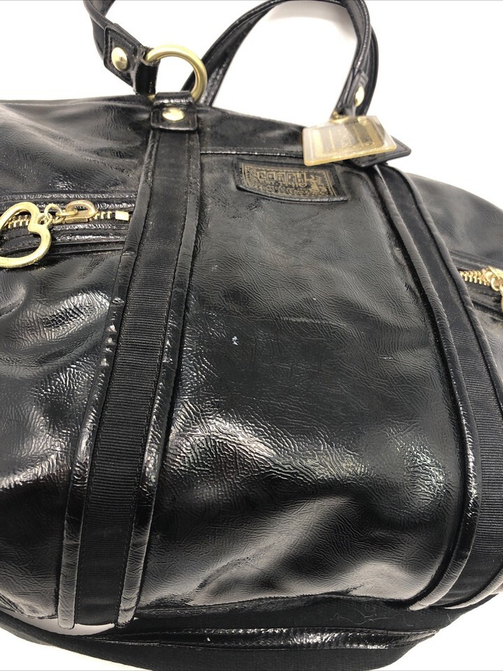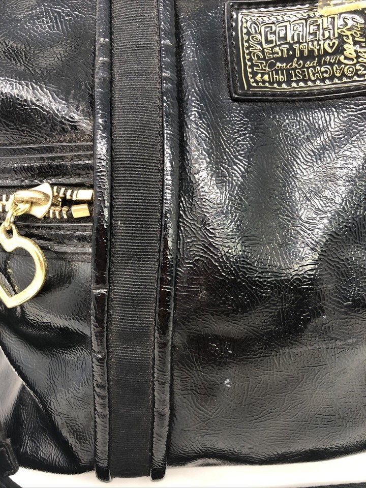 COACH POPPY GLAM SHOULDER TOTE PATENT LEATHER BLACK HANDBAG