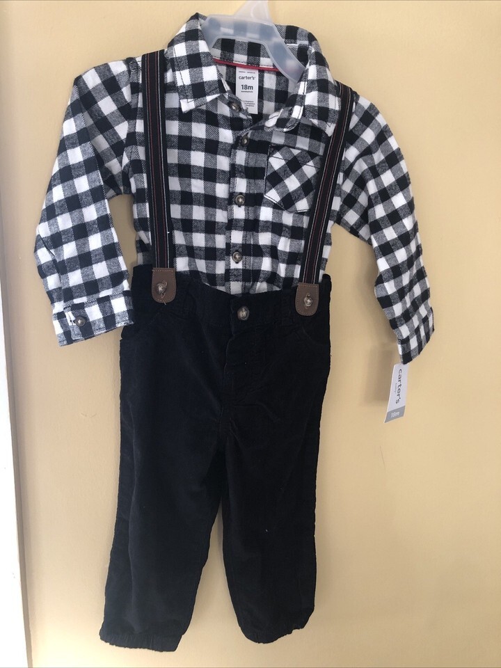 Carter's Boy's Cotton Checker Bodysuit Suspenders & Corduroy Pants Set 18 Months