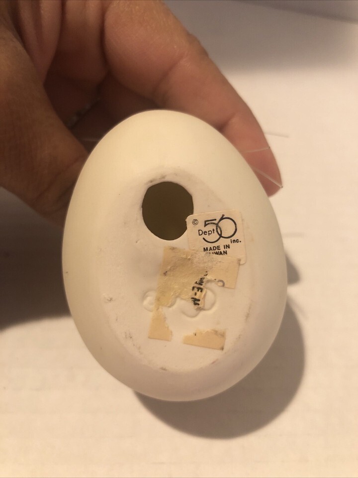 The product is a vintage Dept 56 figurine featuring a white rabbit with pink eyes, commonly known as a bunny. It is likely part of a collectibles series related to animals, specifically rabbits, which fits into a farm and countryside theme. This charming figurine would make a lovely addition to any collection or decor with its nostalgic design and unique details.