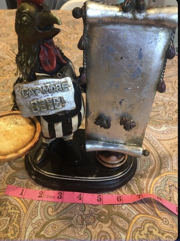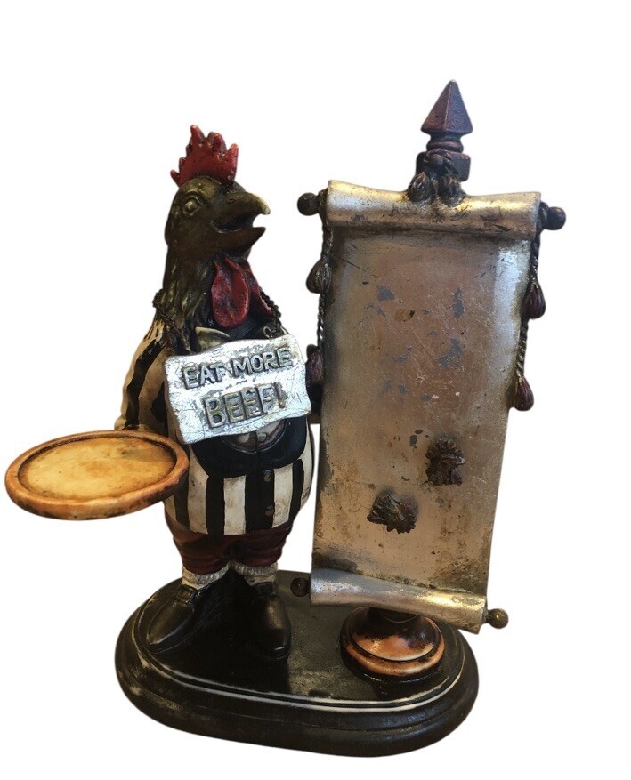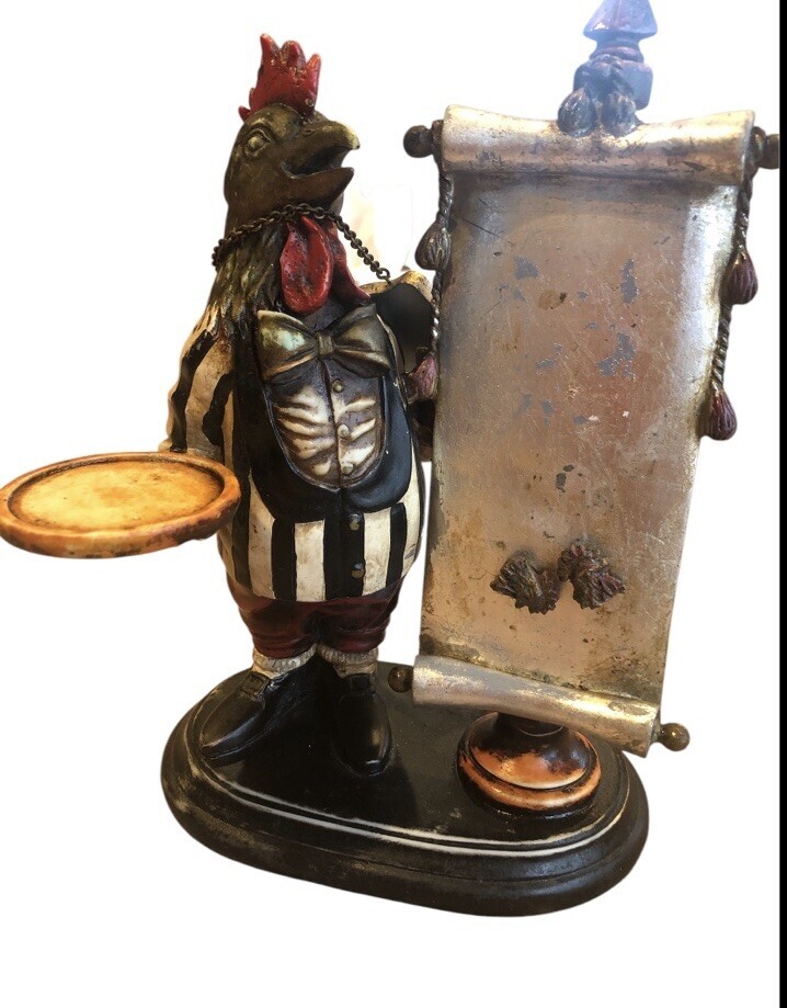 Chicken Rooster Butler W/Tray Small Statue Kitchen Decor Eat Read Description