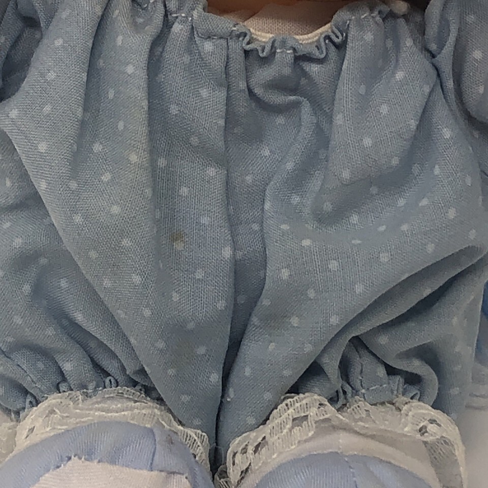 Vintage Fun World Blue Haired Polka dot Outfit Doll 7” Long