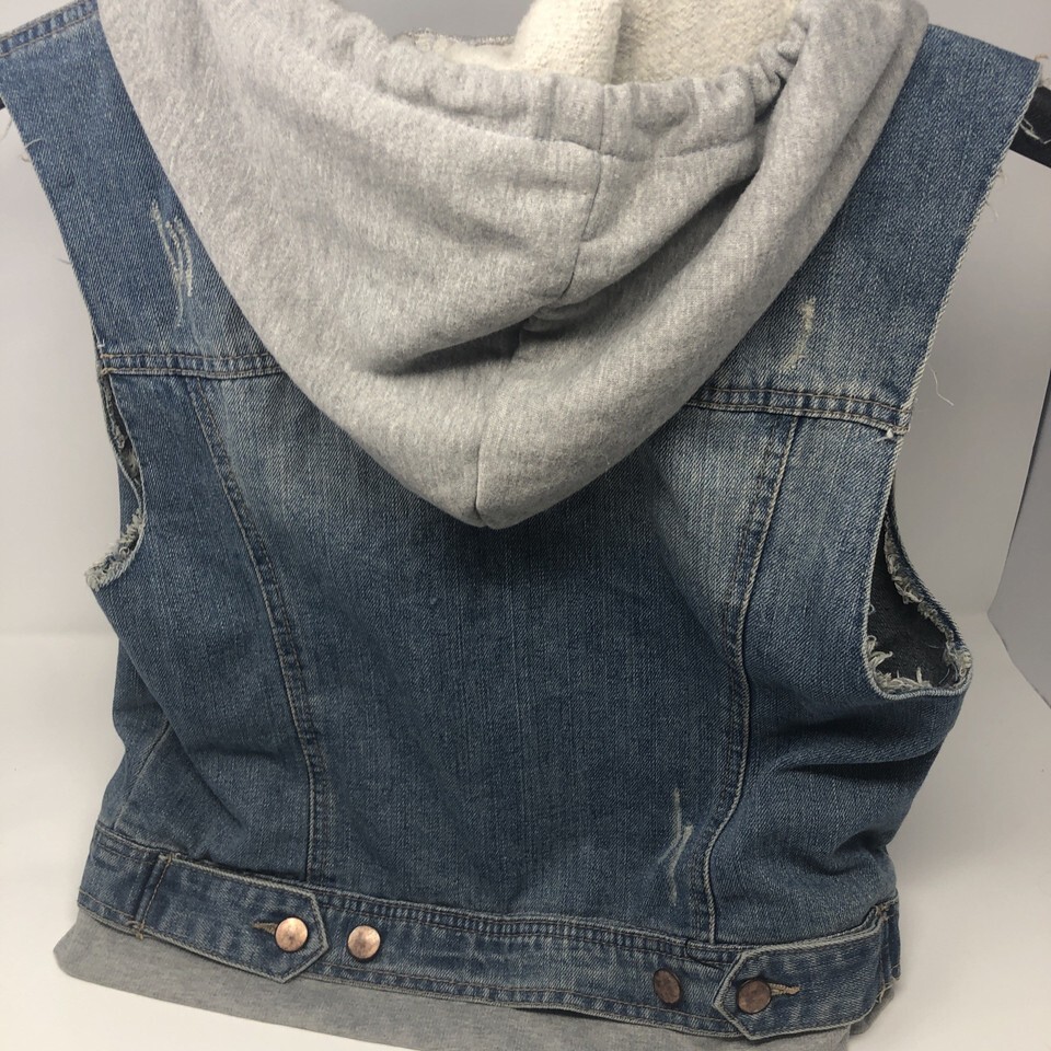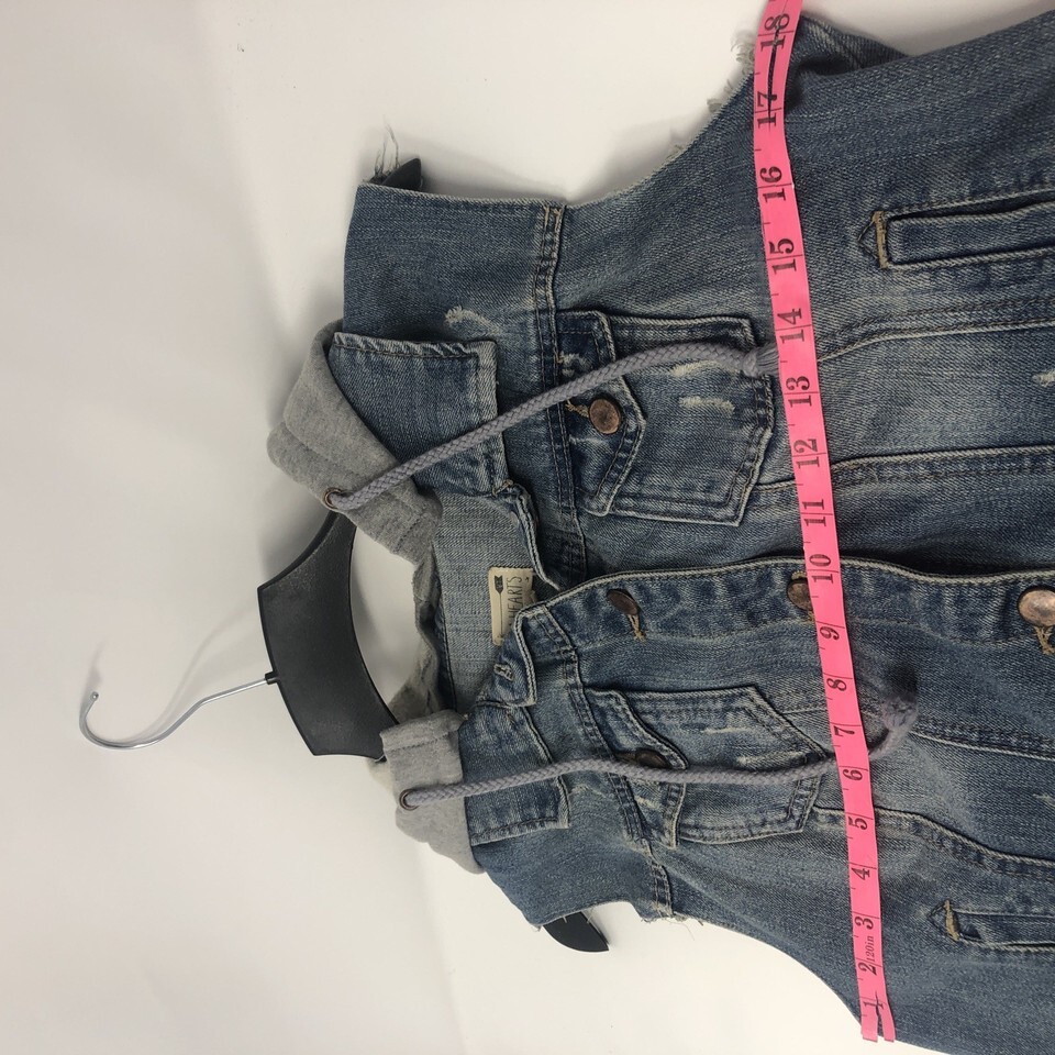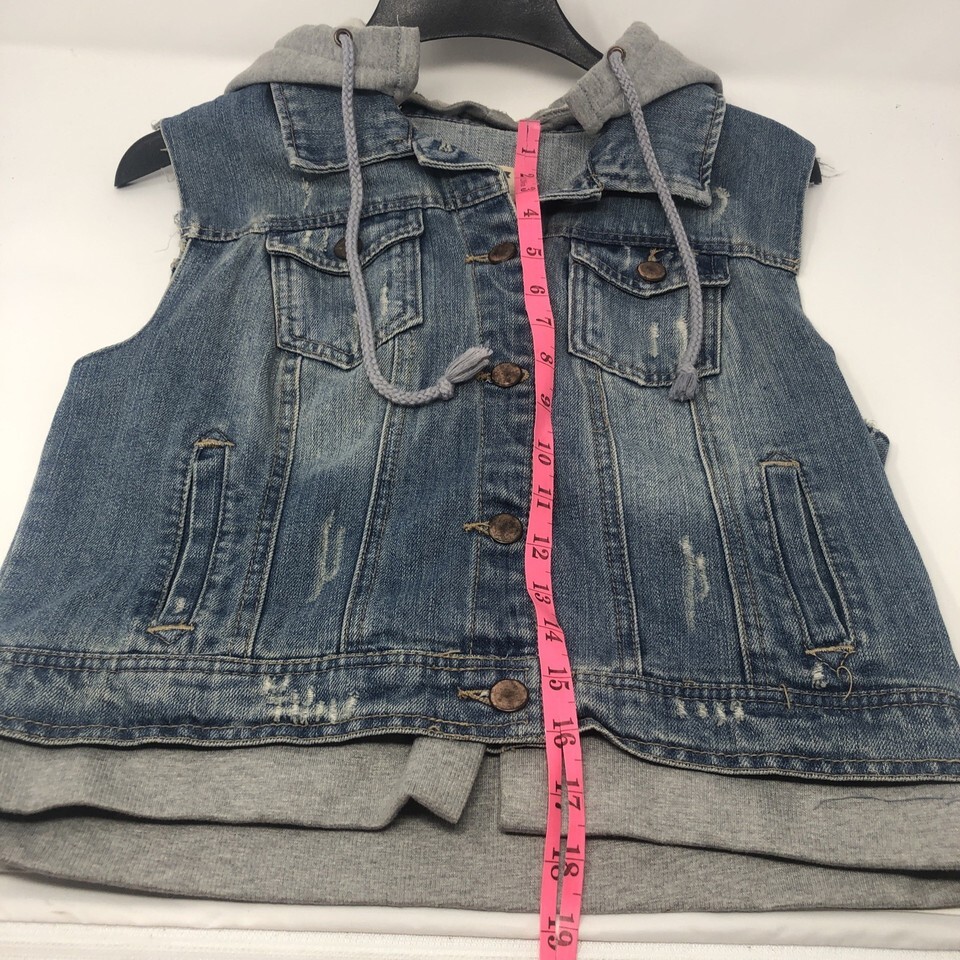 LA Hearts Women’s Sleeveless Vest Blue Denim Button Up Hooded Size Large