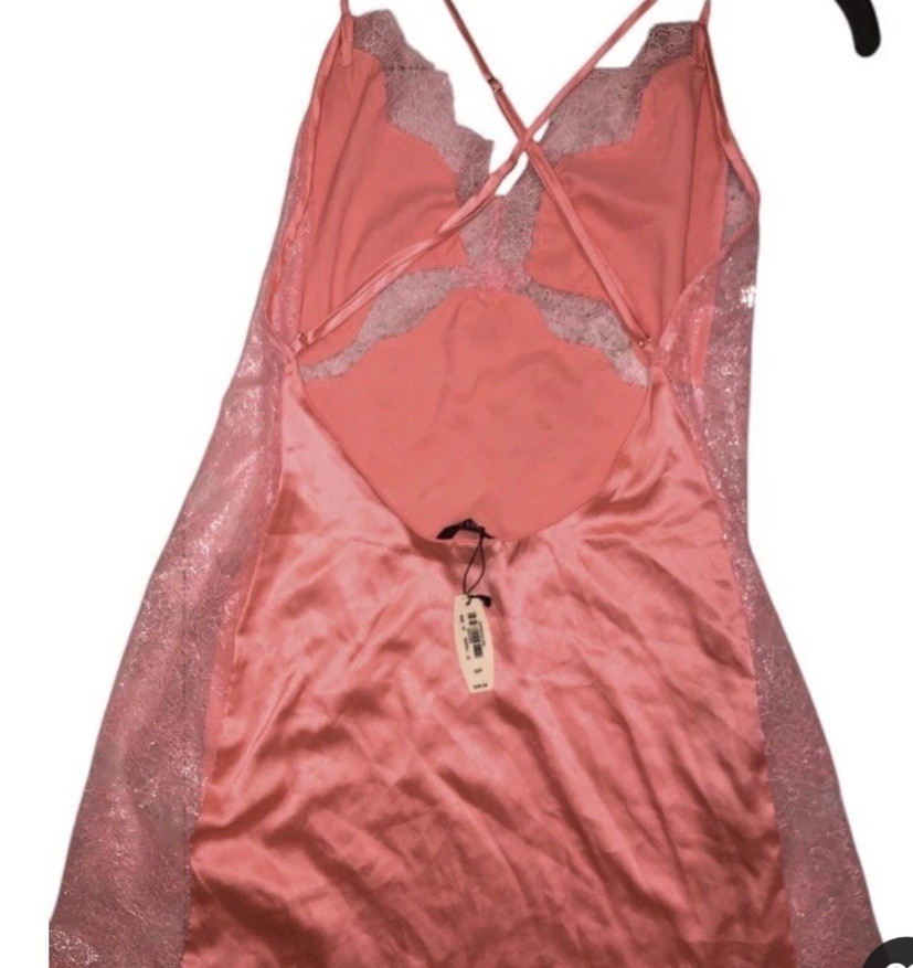 Vinctoria’s Secret One Piece lingerie Pink Lace Open Back New With Tags Size S/P