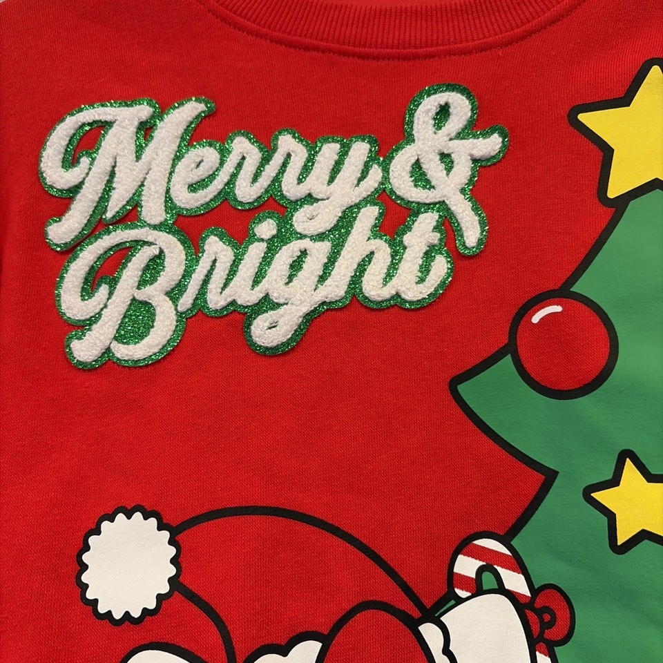 Hello Kitty Christmas Sweatshirt Kids Girls Size Medium Red Merry & Bright Shirt