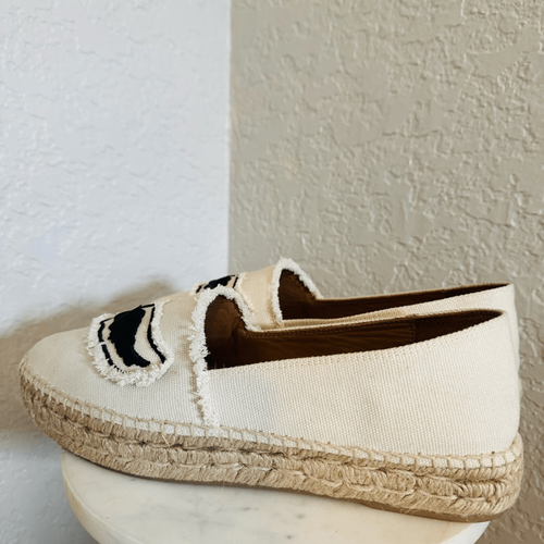 Zadig & Voltaire Canvas Espadrille Slip on Flat, Cream/Black, Size 11, NWOT