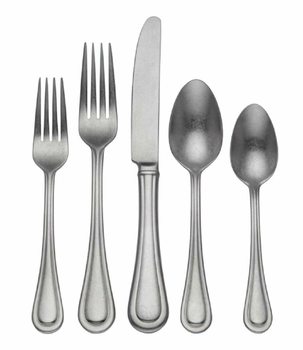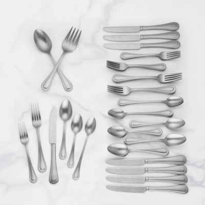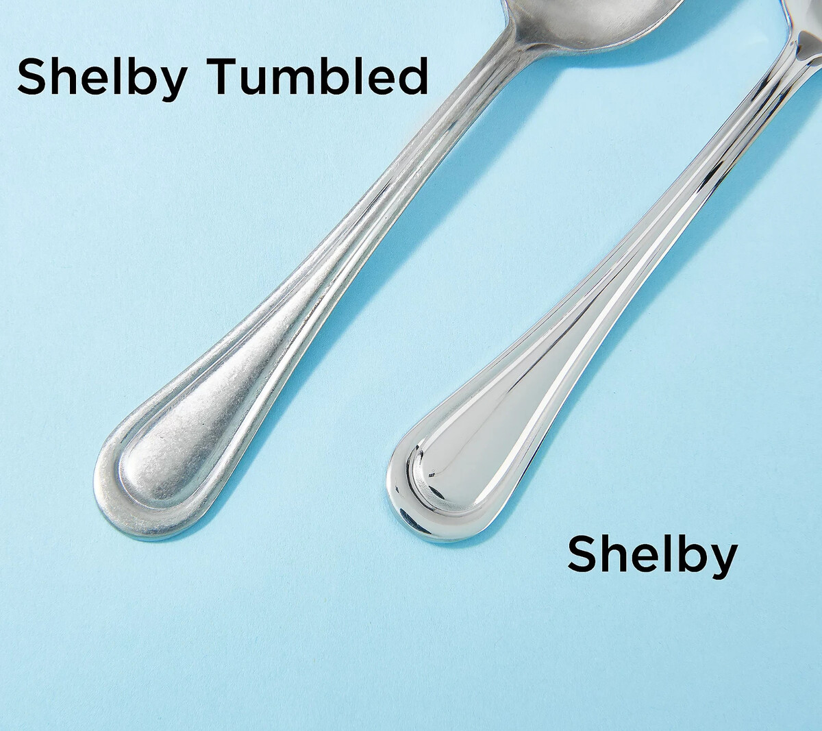Shelby 50-Piece Tumbled flatware set has a vintage