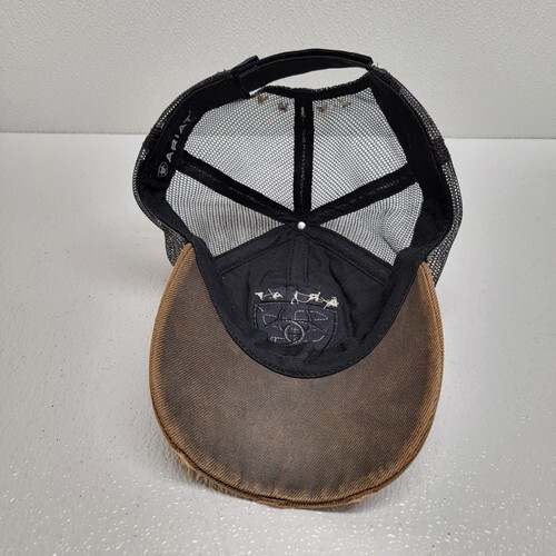Ariat Distressed Brown Hat Cap Strapback Black Mesh Back One Size Adjustable. Images show actual item that will ship.