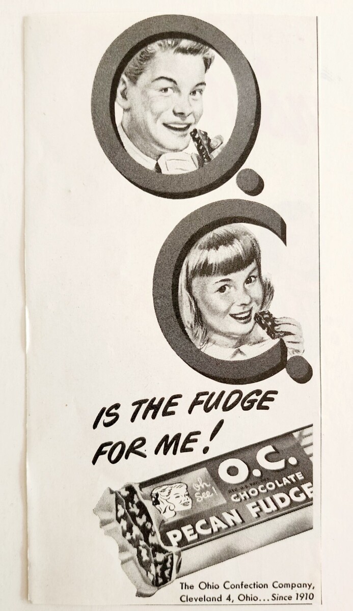 1947 Ohio Confection Co Candy Bar Advertisement Chocolate Pecan Fudge DWJJ20