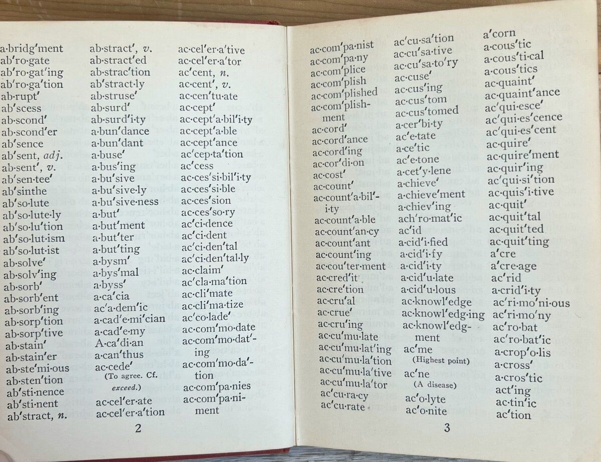 Not a true dictionary as there are no definitions. But a handy vintage guide to 20,000 words. Great condition with some wear especially on cover from use and storage