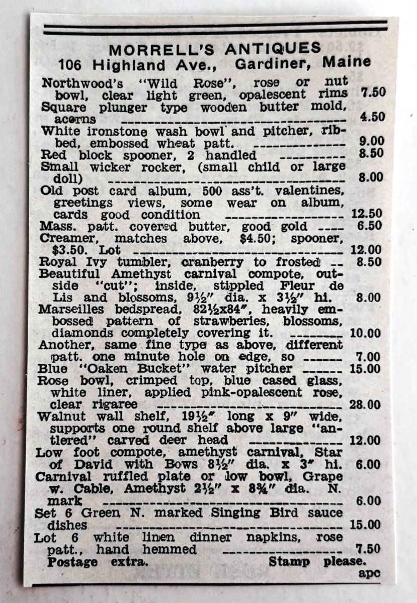 1961 Morrell's Antiques Shop Advertisement and 48 similar items