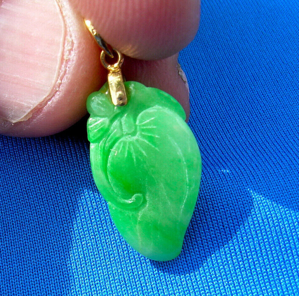 Earth mined Jadeite Jade Green White Color Deco Pendant Medallion 18k Gold Charm