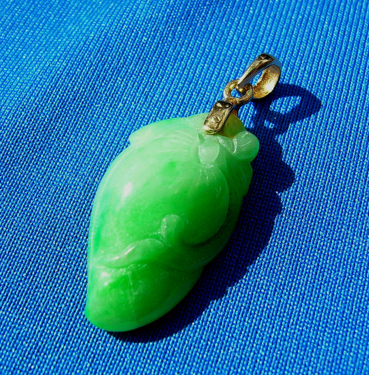 NATURAL EARTH-MINED JADEITE JADE PENDANT MEDALLION 18K SOLID GOLD.