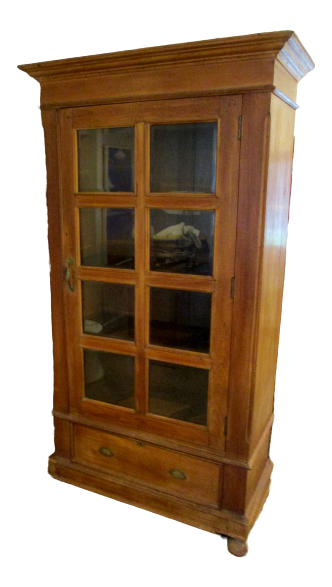 A Regency bookcase, constructed in mahogany, rising from feet of circular form, the lower section having a drawer. Above, the eight panel glass door fronts the three original interior shelves. The original locks and fittings are fitted throughout.