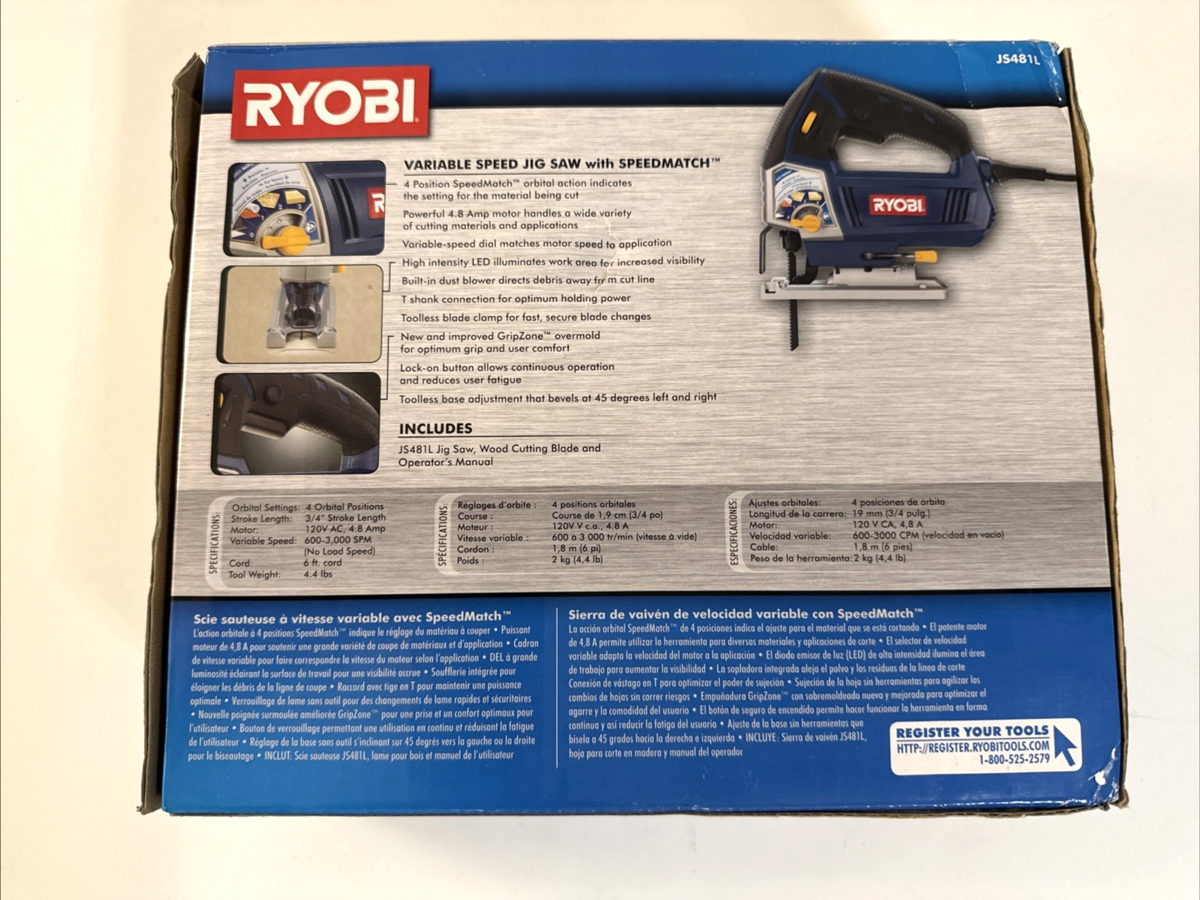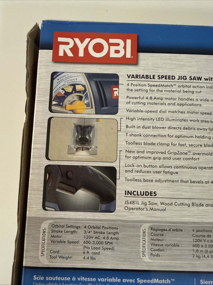 Ryobi Variable Speed Corded Jig Saw W/ Speedmatch JS481L Blue Corded New