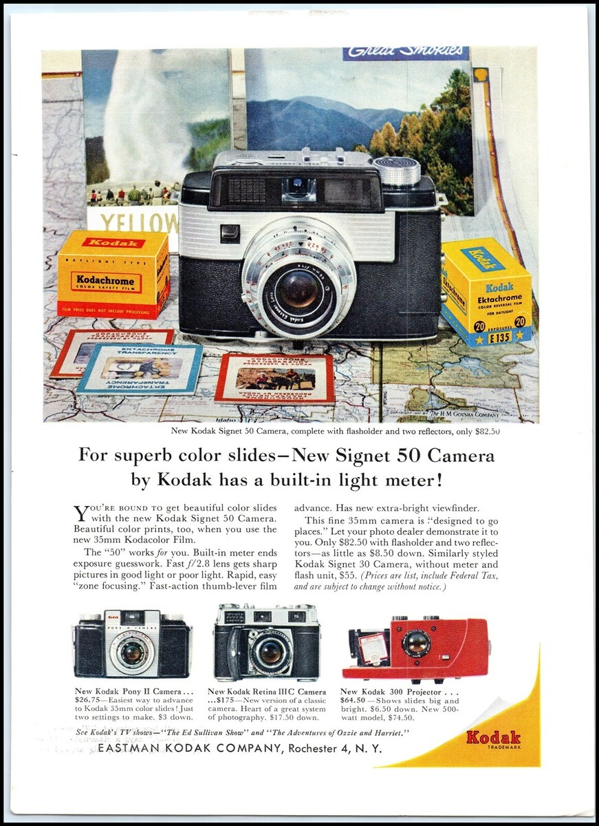 1950s Kodak Signet 50 Camera PRINT AD Pony II, Retina IIIC, 300 Projector BX4