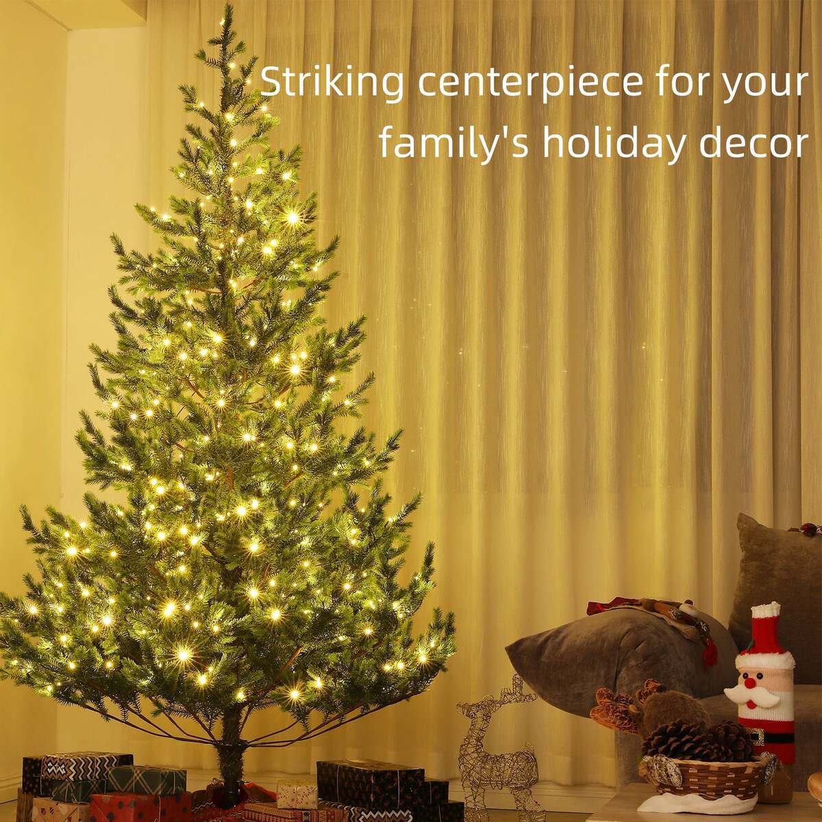 Versatile Lighting Options: Equipped with 310 LED lights, this realistic Christmas tree offers warm white and colorful options across 11 pre-set modes, creating a festive atmosphere with varied lighting effects.