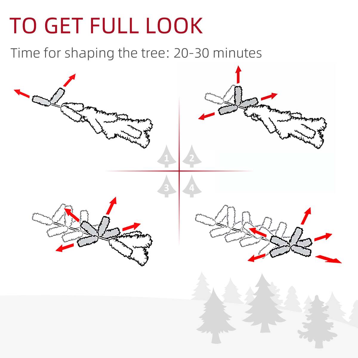 Quick Setup: Built with a hinged and sectioned design, this faux Christmas tree's pre-attached molded branches open automatically, and need little shaping, allowing for faster assembly. Setup takes 20-30 minutes.