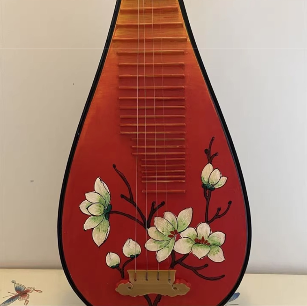Pipa 88cm suitable for children Painted red lotus pattern Chinese string instrum