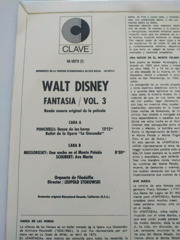 Fantasia Walt Disney Soundtrack 1968 Mussorgsky Schubert - LP Vinilo 12" VG/VG