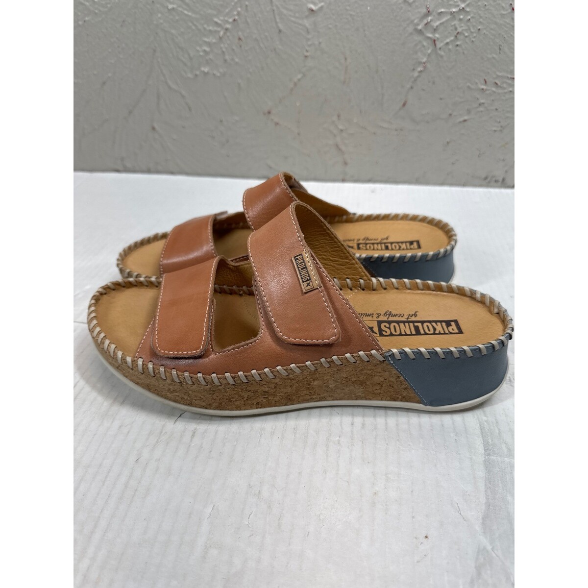 Pikolinos Women's Leather Adjustable Strap Slip On Sandals Brown Size 41