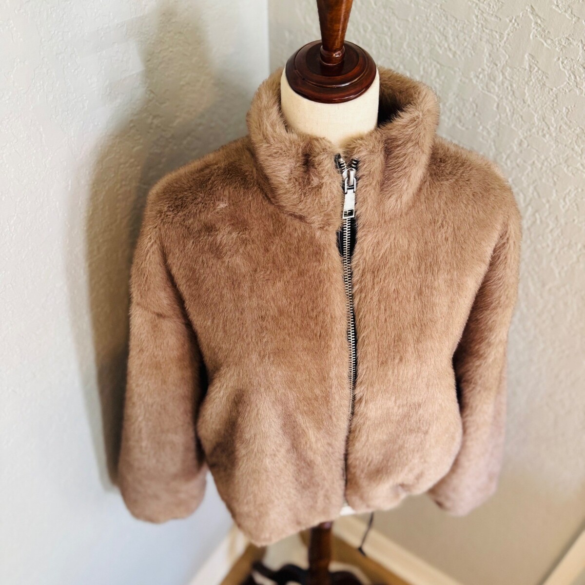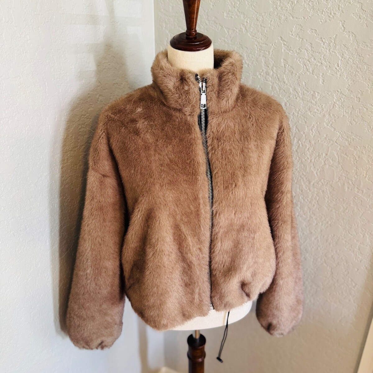 Rebecca Minkoff Faux Fur Crop Jacket, Taupe/Tan Medium, NWT