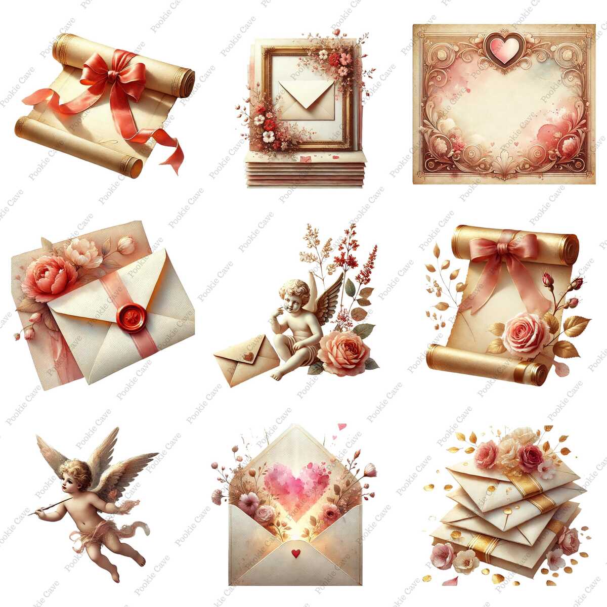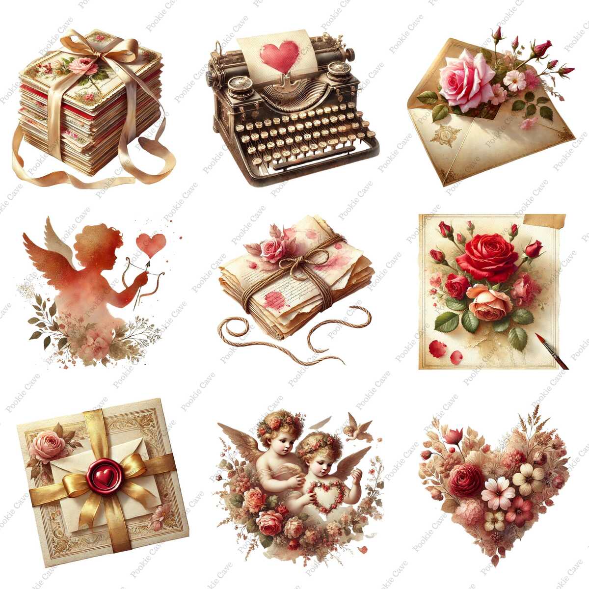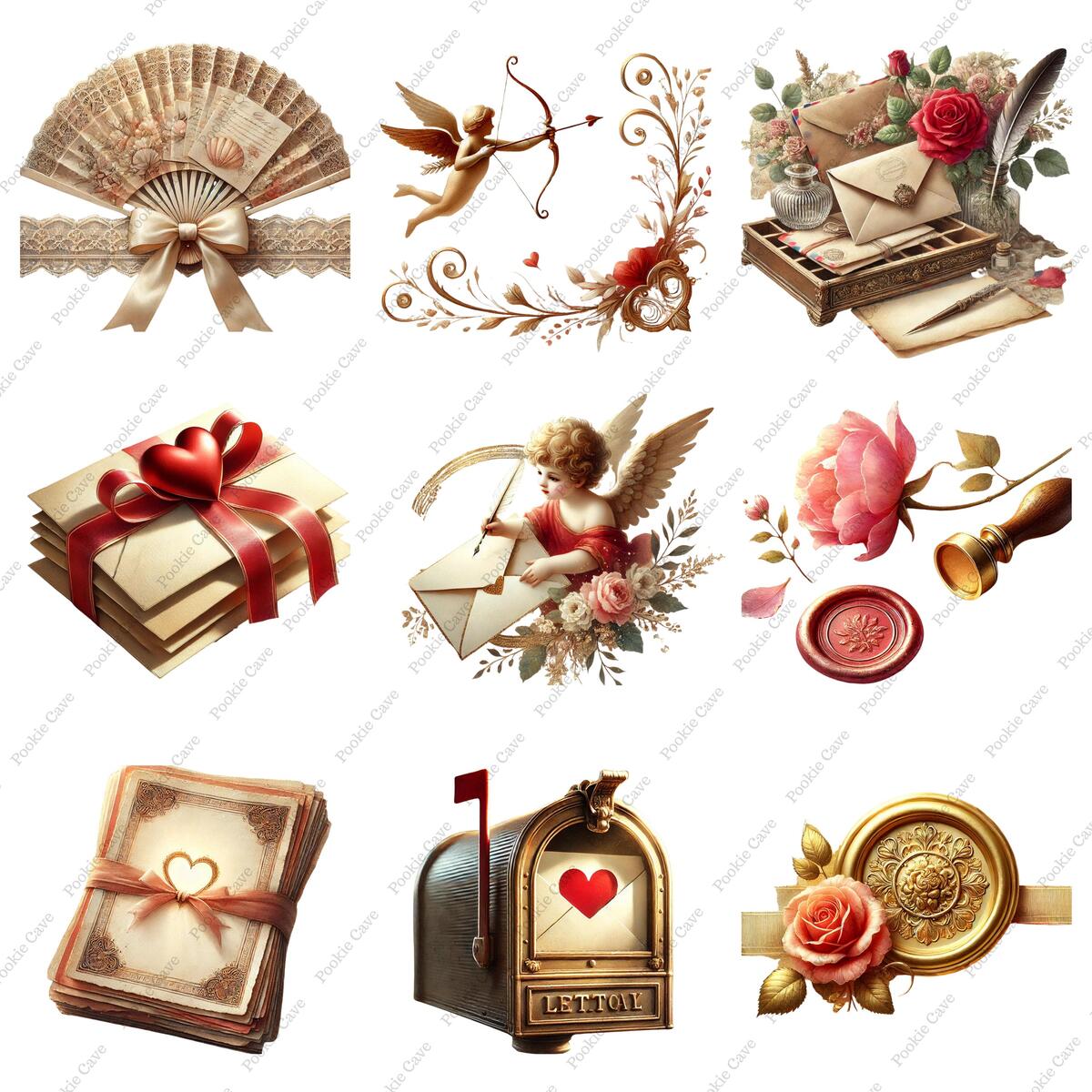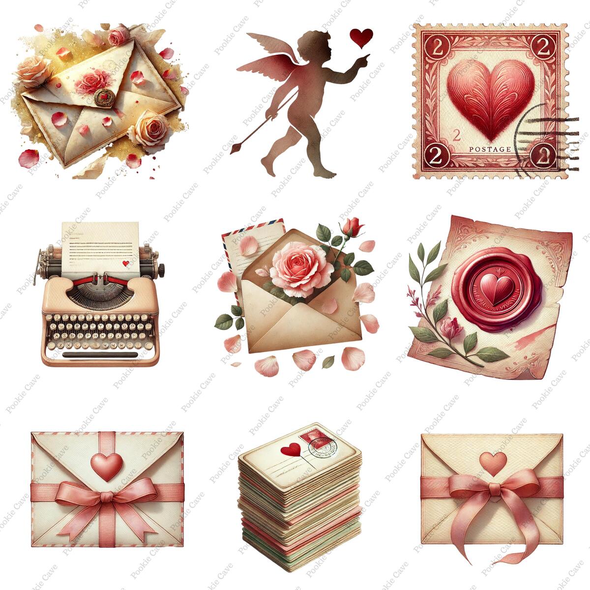 Fall in love with nostalgia. This set of 36 Vintage Valentine Postcards captures the timeless elegance of romantic correspondence through digital watercolor art.